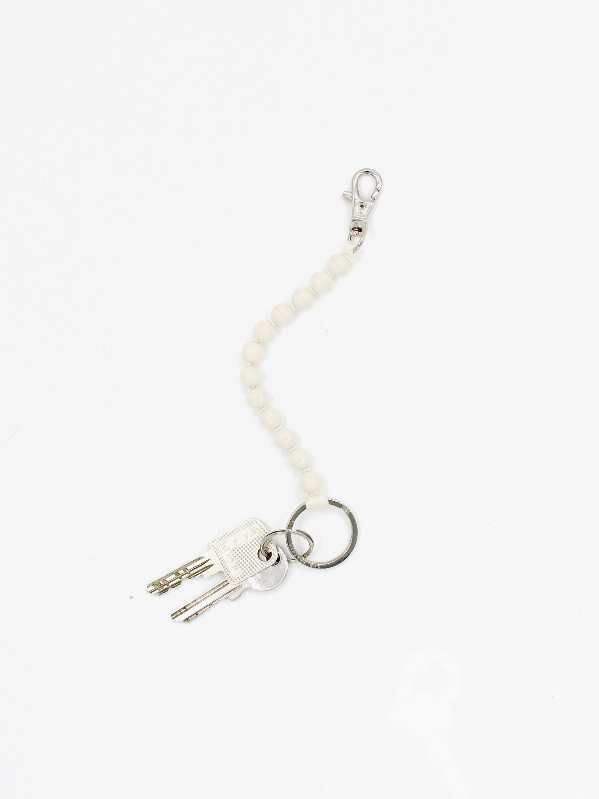 Keychain with elastic band and threaded wooden beads.
