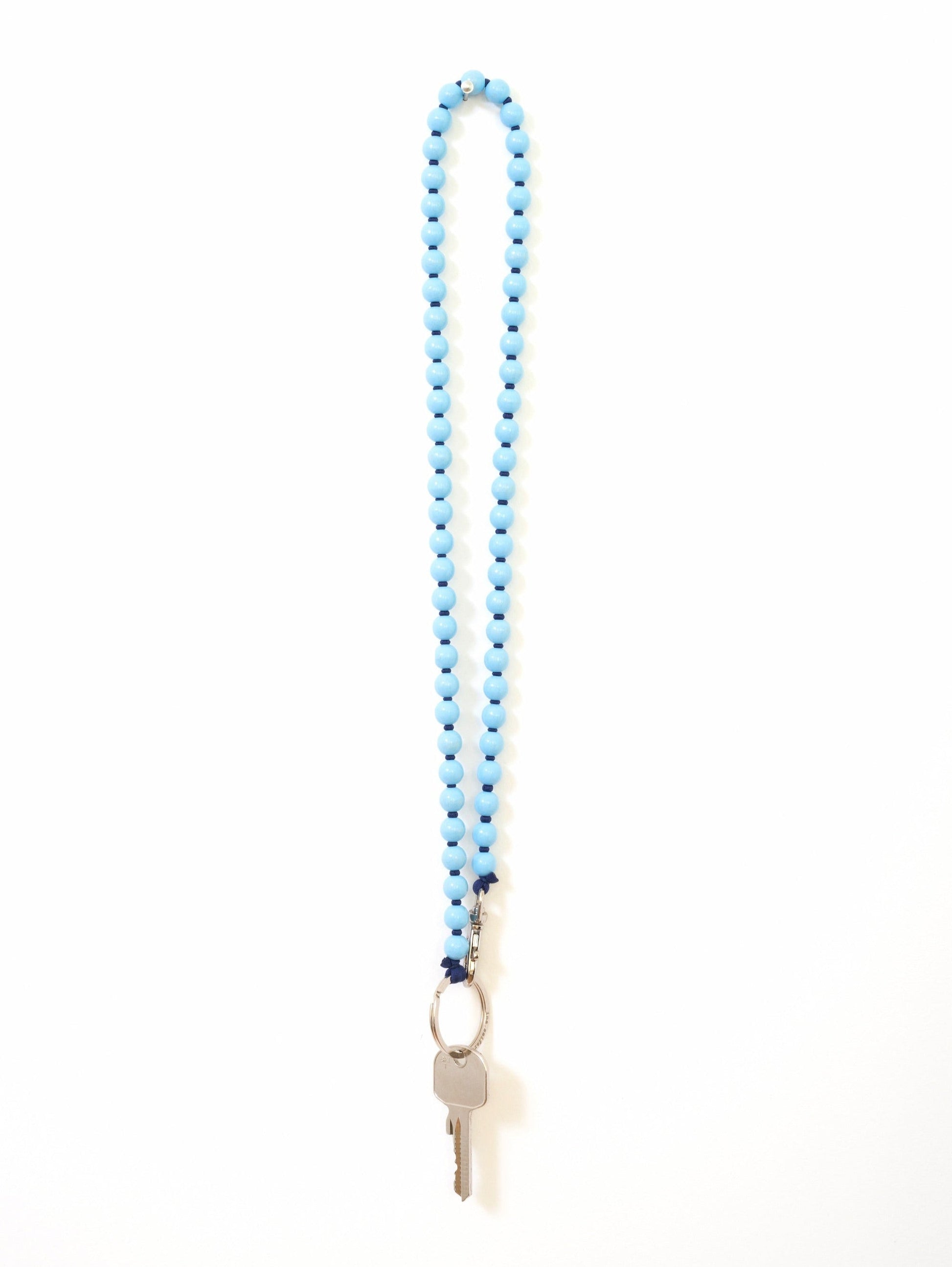 Keychain with elastic band and threaded wooden beads.