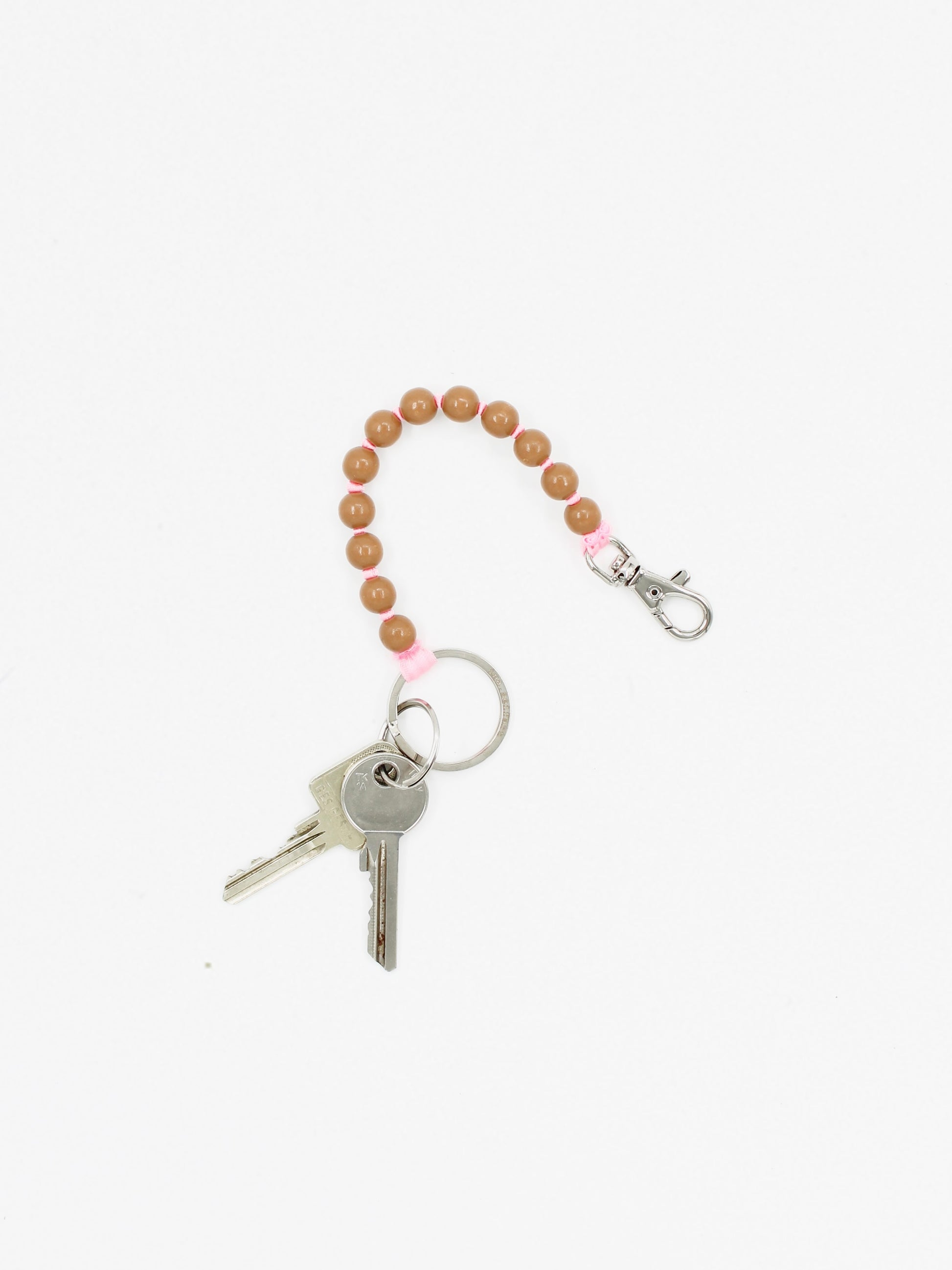 Keychain with elastic band and threaded wooden beads.